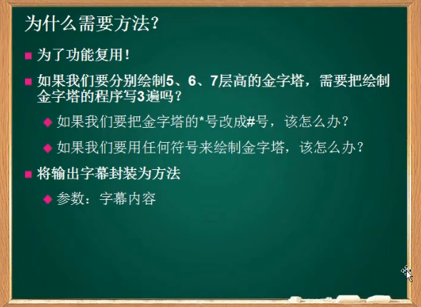 using System;using System.Collections.Generic;using System.Linq;using System.Text;using System.Threading.Tasks;namespace method{    class Program    {/*        static 返回值类型 方法名(参数列表)*/         //定义方法        static void Talk1()        {            Console.Clear();            Console.WriteLine("……你的佩剑为何沾有杂尘?为何不擦拭干净?");            Console.ReadLine();        }        //定义方法        static void Talk2()        {            Console.Clear();            Console.WriteLine("能用就好,反正一剑射出去没射偏就成了……");            Console.ReadLine();        }        //定义方法        static void Talk3()        {            Console.Clear();            Console.WriteLine("什么意思?平时如何使用这把剑?");            Console.ReadLine();        }        //定义方法        static void Talk4()        {            Console.Clear();            Console.WriteLine("我想想啊……");            Console.ReadLine();        }        //夜光:有点意思        static void Talk(string s)        {            Console.Clear();            Console.WriteLine(s);  //我们传递一个字符串进去            Console.ReadLine();        }        static void g()        {            Console.WriteLine("g");        }        static void f()        {            Console.WriteLine("begin f");            g();            Console.WriteLine("end f");        }        ///         /// 夜光:打三个杠,自动生成方法的说明框架        ///          /// 传入n        ///        返回1到n的和            static int Sum(int n)        {            //应该把这个结果返回给这个方法的调用者            int s = 0;            for(int i = 1; i <= n; i++)            {                s += i;            }            /* return 表达式*/            return s;        }        static void Main(string[] args)        {            int t;            t = Sum(1111);            Console.WriteLine(t);            string s;            s = Console.ReadLine();            Console.WriteLine("welcome~{0}", s);           /* f();*/            //调用方法            /*Talk("为侠者一生所求,除魔卫道,可不正是为了此情此景、为了这些人脸上的笑容?");            Talk("嗯,你说的对,紫英!");            Talk("你不叫我“师叔”了?");            Talk("哈,忘了——");*/            Console.ReadLine();        }    }}