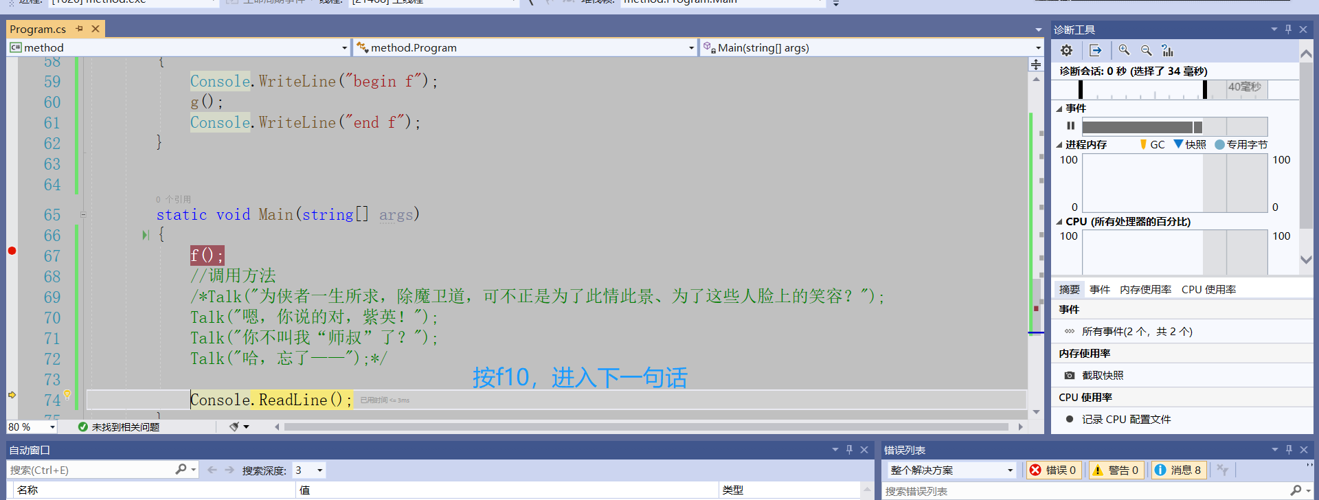 f10 直接执行完了